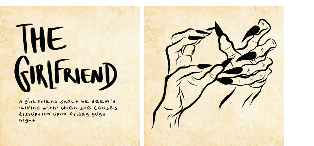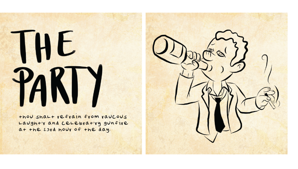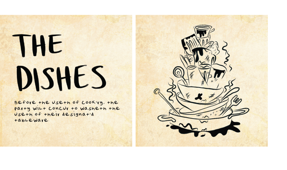 Individual assignment; a roommate contract on a set of coasters. Illustrations & fonts on Procreate